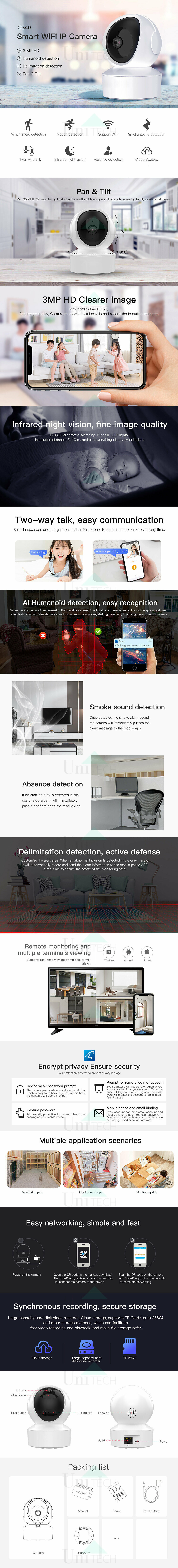 支持多種AI功能,例如人形檢測,移動偵測,哭聲檢測,人形框定+追踪,離崗偵測,煙感偵測。